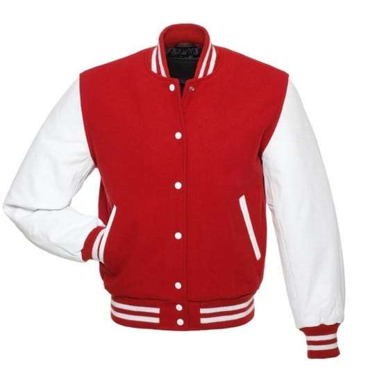 Red Letterman Jacket with White Leather Sleeves
